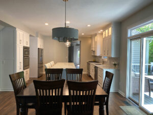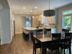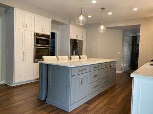 Kitchen Remodel With Custom White Cabinets And Countertops And Grey Island In Columbus, OH